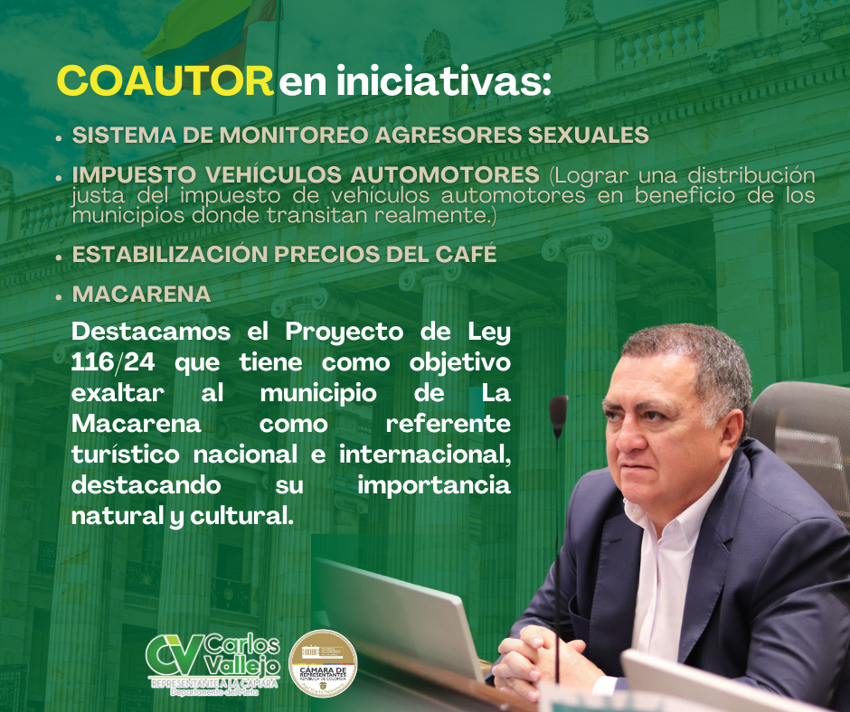Durante la vigencia legislativa 2023-2024, nuestro compromiso en la Cámara de Representantes se reflejó en la gestión de iniciativas clave para el bienestar de la comunidad. A través de proyectos, debates y acciones concretas, impulsamos mejoras en sectores estratégicos como la salud, la educación y el desarrollo social. A continuación, presentamos los logros más destacados de este período: